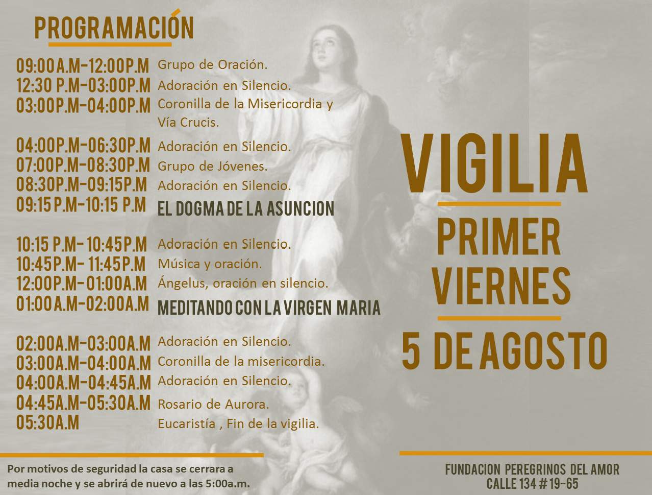 Las actividades semanales en invitaciones generales: Estas son las actividades principales de nuestra misión. El grupo de oración Hijos de María es un espacio abierto de oración para que jóvenes de los 25 años en adelante se congreguen y oren para crecer espiritualmente y formarse en la fe de nuestra Iglesia. El grupo de adultos es un espacio para que los adultos, inicia con la Santa Misa y luego adoración a Santísimo, durante este espacio se escucha una reflexión de nuestro fundador, Marino Restrepo. El grupo de Jóvenes es un espacio para los jóvenes entre 16 y 25 años donde se reúnen a orar y profundizar en diferentes temas de nuestra fe. El grupo de Jóvenes Misioneros del Santo Padre es un movimiento de evangelización que busca inculcar la necesidad de que el joven conozca profundamente su fe, aumentando así su amor por Jesucristo y su Iglesia e impulsándolo a salir y compartir sus testimonios de vida con otros jóvenes. El grupo de familias es un espacio para que se unan las familias frente a Jesús Sacramentado y tengan un momento de oración.