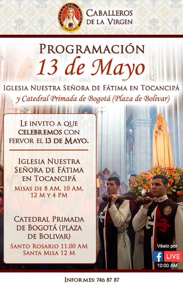 Centro de información Yo quiero Noticias Boletines Eventos Artículos Canonización Mensajes del Señor Cardenal Cartas pastorales Homilías Mensajes La voz del pastor Documentos del Vaticano NoticiasCelebración: 13 de mayo, Nuestra Señora de Fátima13 de Mayo de 2019 Like 0 Dislike 0 Noticias relacionadas Ordenaciones en la Catedral Primada de Colombia Tiempo de preparación para la Navidad Video del papa - noviembre de 2025