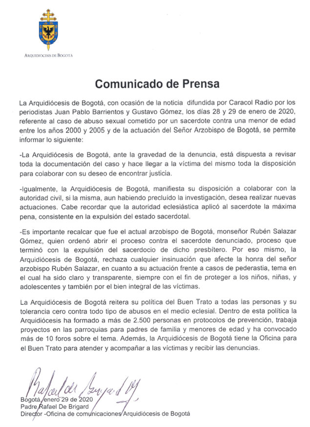 Centro de información Yo quiero Noticias Oraciones Boletines Eventos Artículos Canonización Mensajes del Señor Cardenal Cartas pastorales Homilías Mensajes La voz del pastor Documentos del Vaticano NoticiasComunicado de prensa29 de Enero de 2020 Like 0 Dislike 0 Noticias relacionadas Ordenaciones en la Catedral Primada de Colombia Tiempo de preparación para la Navidad Video del papa - noviembre de 2025