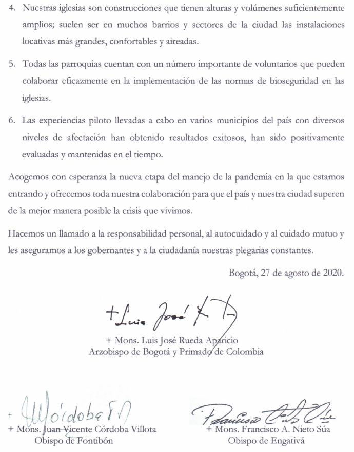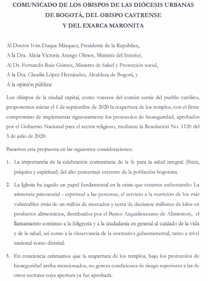 Centro de información Yo quiero Noticias Boletines Eventos Artículos Canonización Mensajes del Señor Cardenal Cartas pastorales Homilías Mensajes La voz del pastor Documentos del Vaticano NoticiasIniciar el 1 de septiembre de 2020 reapertura de los templos28 de Agosto de 2020 Like 0 Dislike 0 Noticias relacionadas Ordenaciones en la Catedral Primada de Colombia Tiempo de preparación para la Navidad Video del papa - noviembre de 2025