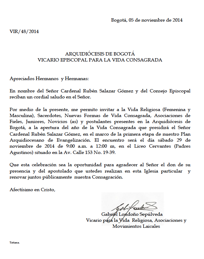 Centro de información Yo quiero Noticias Oraciones Boletines Eventos Artículos Canonización Mensajes del Señor Cardenal Cartas pastorales Homilías Mensajes La voz del pastor Documentos del Vaticano NoticiasInvitación apertura del Año de la Vida Consagrada28 de Noviembre de 2014 Like 0 Dislike 0 Noticias relacionadas Ordenaciones en la Catedral Primada de Colombia Tiempo de preparación para la Navidad Video del papa - noviembre de 2025