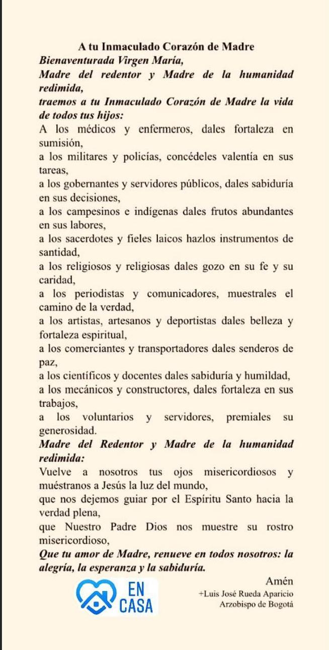 Centro de información Yo quiero Noticias Oraciones Boletines Eventos Artículos Canonización Mensajes del Señor Cardenal Cartas pastorales Homilías Mensajes La voz del pastor Documentos del Vaticano NoticiasOración a María27 de Julio de 2020 Like 0 Dislike 0 Noticias relacionadas Ordenaciones en la Catedral Primada de Colombia Tiempo de preparación para la Navidad Video del papa - noviembre de 2025