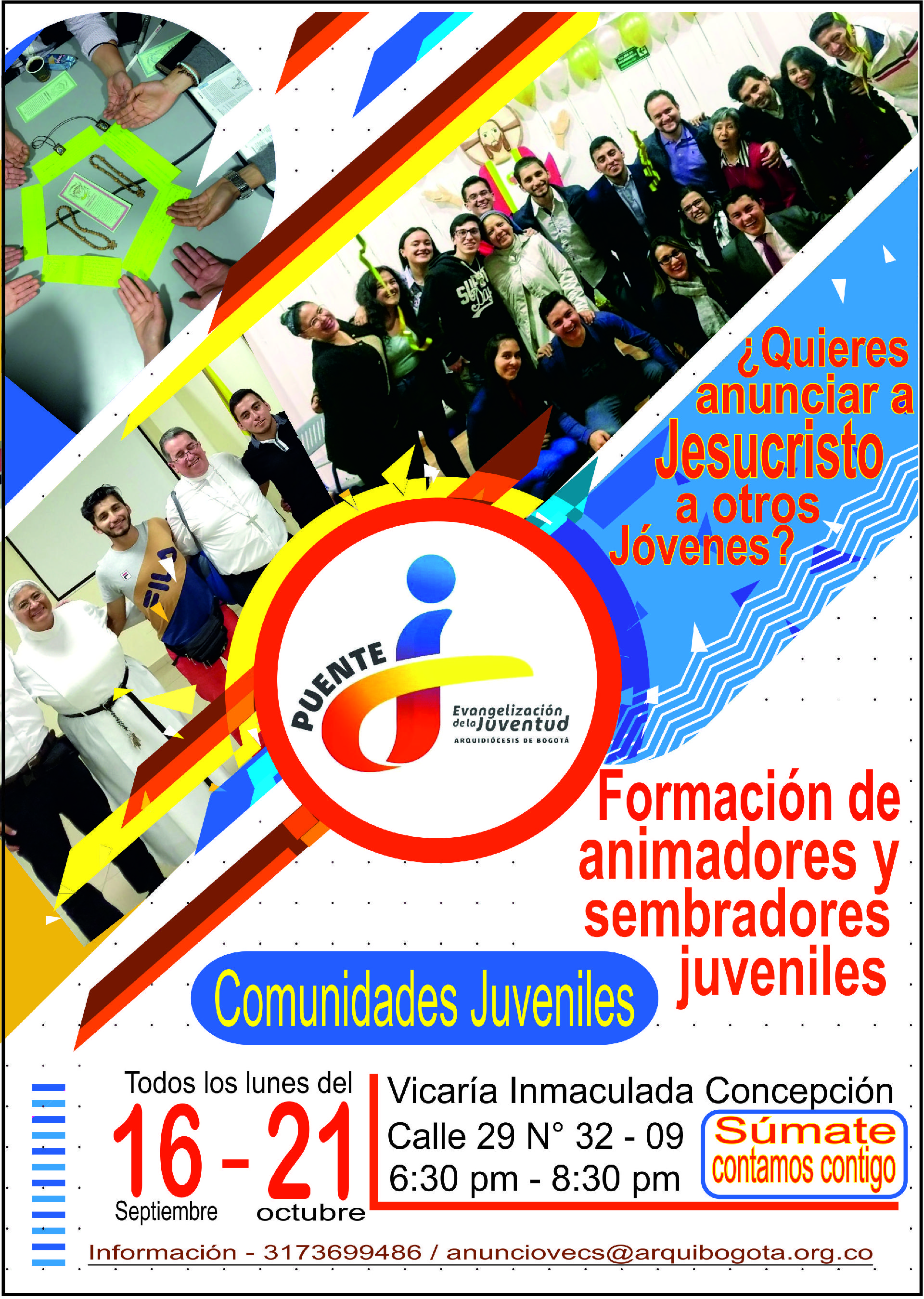 Para cumplir este objetivo, te invito a que te formes como animador o sembrador juvenil en 6 encuentros que se realizarán sobre la propuesta Puente J – Comunidades Juveniles.
